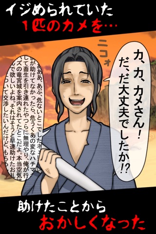 少年が海辺を通りかかると、1匹のカメがいじめられていました。
