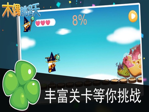 《木偶跳跃》是萌萌哒木偶跟随音乐的节奏跳跃冒险的单机游戏,游戏关卡丰富,极具挑战,通过跳跃躲过障碍,吃金币,最终到达终点完成关卡!