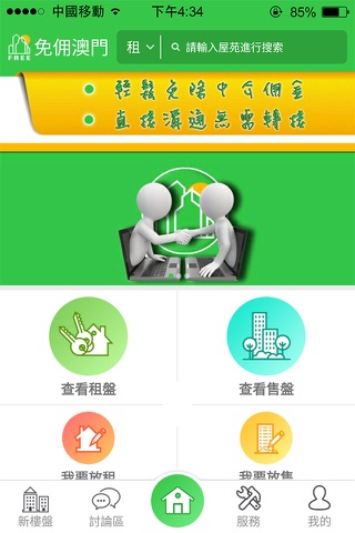 由業主直接放盤、直接享受免佣租售服務的平台。另有免費合約參考、置業計算、法律援助、知識資訊、交流討論、搬屋運輸、裝修設計等多元化配套內容。
