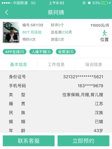 家政服务员身份证信息公安部系统核验+健康证+商务部认证+最高法院数据查询无失信 四重认证。