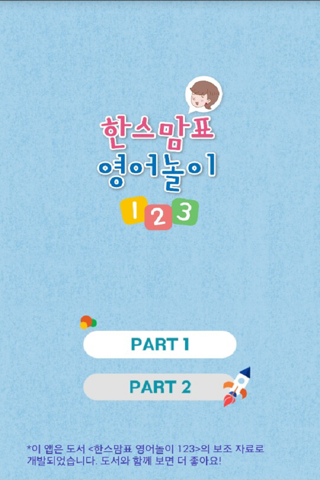 - 이 앱은 도서 《한스맘표 영어놀이 123》의 보조 자료로 개발되었으며, 생활영어와 영어놀이 표현이 수록되어 있습니다.
