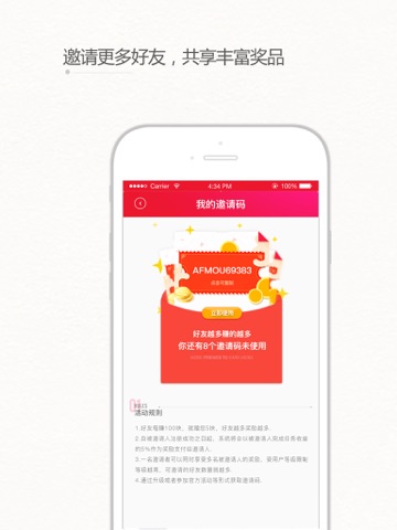 邀请好友再也不怕没邀请码了!一人一码无限制邀请,好友注册和完成任务你还能获得额外奖励!在悬赏任务中还添加了全新红包任务,丰富豪礼只要你敢来,我就送送送!