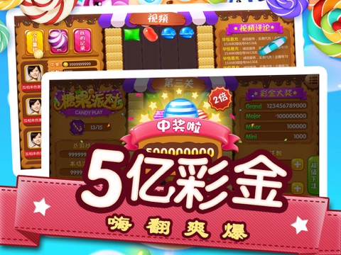 糖果派对是一款休闲娱乐同时又紧张刺激的消除类游戏。游戏分为三关,每一关收集齐15个小拐杖,打破饼干墙即进入下一关。每关的有不同的糖果,分别为4*4,5*5,6*6的糖果格子屋。期间只要出现相同的糖果连线,都会获得不同的奖励。运气好还会触发特殊的免费糖果哦,同时连线过程中,更会触发更大的彩金奖励。押注越多则获得奖励越高。