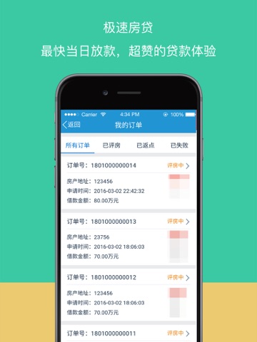 通过房利网强大的接单能力,为同行业合作伙伴提供包括房屋评估、房屋质押、审核放款、机构转单等质押服务。在保证质押接单处理的同时,保证客户资料安全,为同行合作伙伴提供服务费全返的业务模式。