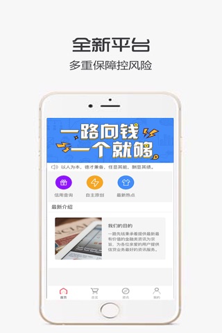 一路向钱是一款专业的线上金融信息服务平台,专属于年轻朋友的财经类信息提供平台。具备强大的搜索引擎功能,为借款人提供专业、高效的综合金融信息服务。通过大数据和智能匹配,通过一路向钱独立的信用评分机制,帮助年轻人了解自己的信用,珍惜自己的信用。