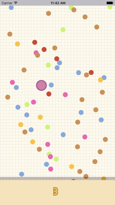 在这个圆点的世界里,时不时会有圆点变色成红色的圆点下降。这时候如果你不消除它们的话,它们就会一直下落,掉落出这个圆点的世界,你就游戏结束了!