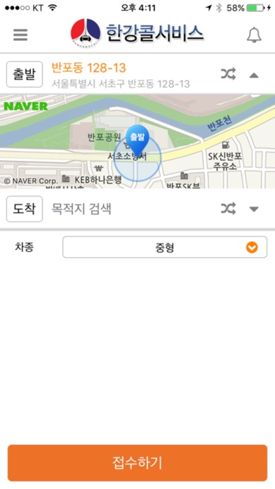 3. 배차요청 – 위치확인 후 택시요청을 하시면 바로 콜센터로 배차요청사항이 요청되어 차량이 배차가 됩니다.