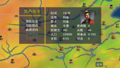 3当你的部队和敌方部队碰面,或你的部队攻城,再或对方部队攻你的城,就会进入战争模式,该模式是以淘汰制形式,当某一方面武将全部败北,则可以判定胜负。开战的时候,双方各选出一队伍进行PK,当一方的武将HP为0或者逃跑了,就算另一方胜利,当时间为0时,则判定双方平手。胜利主要的依据有:1武将能力 2武将技 3部队质量 4兵种相克