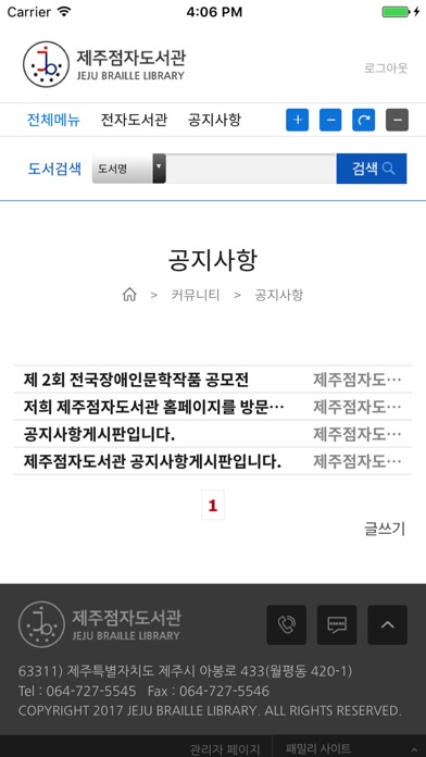 제주점자도서관 홈페이지의 소식을 어플리케이션을 통해 확인하실 수 있습니다.