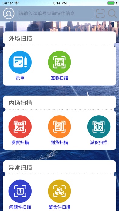 收、发、到、派、签、疑难件登记等业务操作及快件跟踪、订单管理、交易明细。