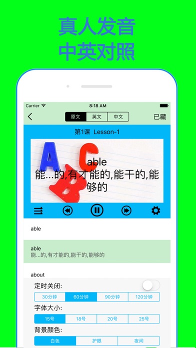 随时随地,想听就听!想背就背,解放双眼。
