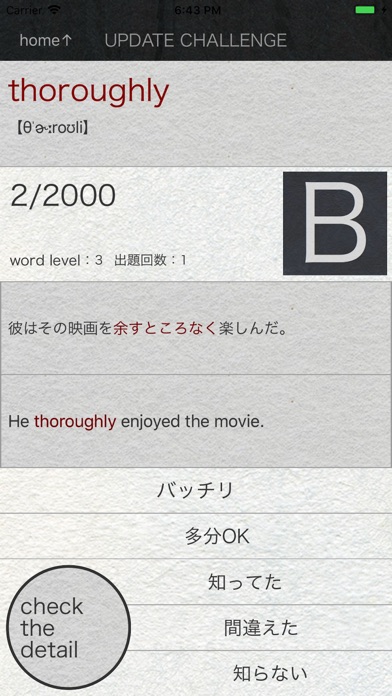 そんなあなたにこそ、このアプリは最高にして最後の単語アプリとなることを約束します。出題問題を細かく選定したあとは、ひたすらTOEIC例文を読んで単語の習得度を答えていくだけです。