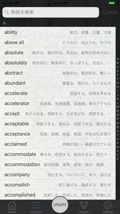 ・全収録単語を英語・日本語の両方で検索確認できる辞書を搭載