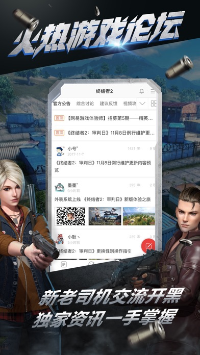 终结者2助手是网易游戏出品的《终结者2:审判日》官方辅助APP盒子,为终结者玩家提供全面的游戏资讯、视频、攻略等信息,并拥有火热的玩家社区、即时聊天、聊天室等社交功能助你寻找开黑队友,勇夺桂冠。