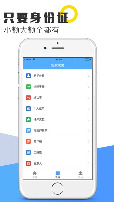 3、门槛低:只需一张身份证,无需抵押,无需担保;
