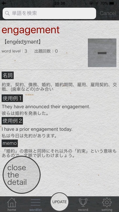 学習を継続させるためのモチベーションを高める要素を排除し、学習者の習得度の分析機能に特化することにより、あとはあなたのやる気と誠実ささえあれば最高の単語学習ツールとなる孤高の自己満足アプリとなります。