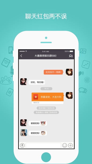 唐信支持跨通信运营商、跨操作系统平台通过网络快速发送免费(需消耗少量网络流量)语音 、图片、文字、表情、红包。