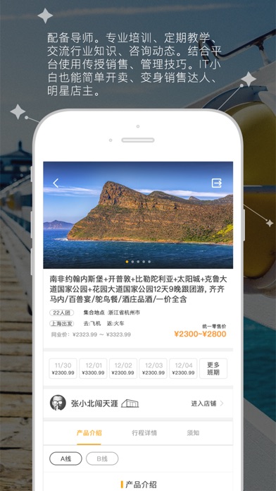 3.高效:专业的线路团期、订单、营销、客户管理、分销系统,为店主高效经营、简单赚钱。