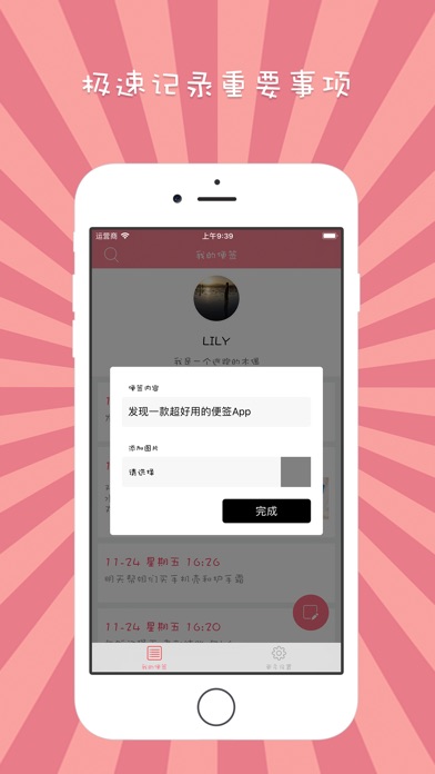 - 极速记录:添加文字和图片就可以快速记录你想记录的事项。