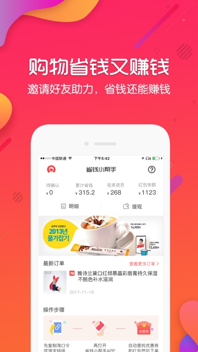 省钱小帮手是一款能查询到优惠力度较大、高性价比商品的APP。省钱小帮手致力于帮助用户省好每一分钱。