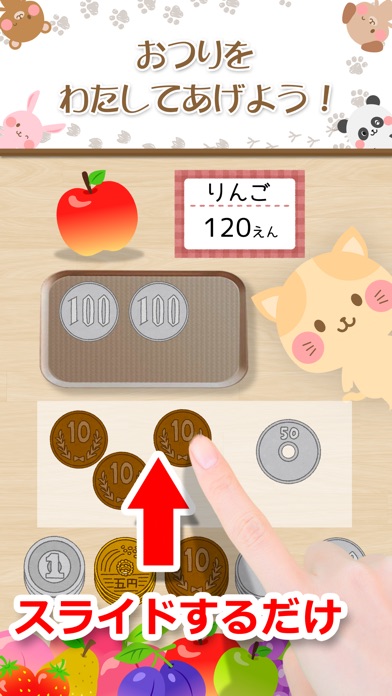 お金のやり取りを動物たちと一緒に学習するアプリです。