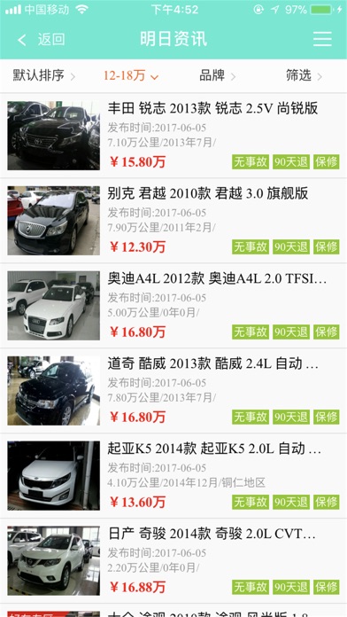 明日资讯,全国车源的二手车平台,精选优质信得过的二手车车源,360度无死角海量真实车照,提供专业二手车审核估价,做人人都买的起的二手车平台!让您轻松低价买车、省心卖车。