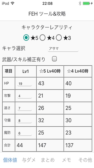 キャラクターは、全部5になった場合のLv40時ステータスを表示するようにしています。