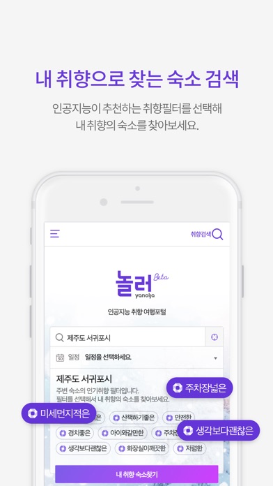 놀러는 여러분이 선호하는 숙소의 다양한 취향을 선택해서