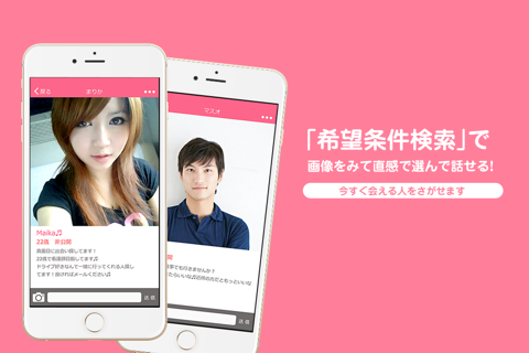 アナタにあった最適の検索方法でひみつのお相手を見つけ出し、双方にマッチングが成立したことを通知いたします。一番最初の会話に困ったときなどにとっても便利!