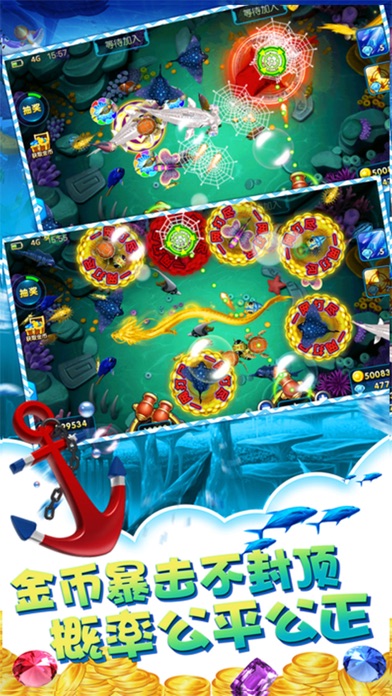 100%还原街机捕鱼。免费金币、超级豪礼、华丽子弹皮肤、炫酷技能、百万玩家天天在线!各地捕鱼高手齐聚竞技场拼实力,快来约战,释放出你的洪荒之力!在这个凭实力说话的海底世界里,一炮就能让你翻身成为捕鱼大亨!