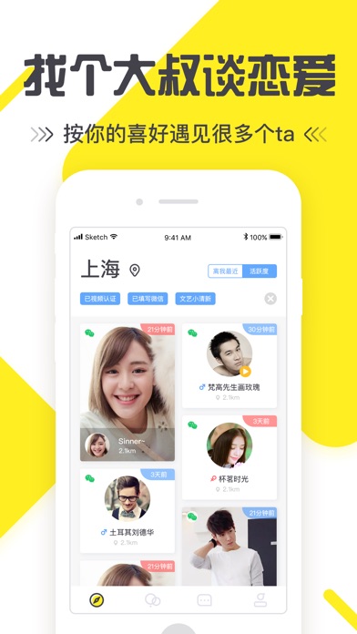 大叔控APP,基于区块理念的同城高信任交友平台,通过区块技术进行特征分析,帮你找到人群中很多个适合你的Ta供选择。