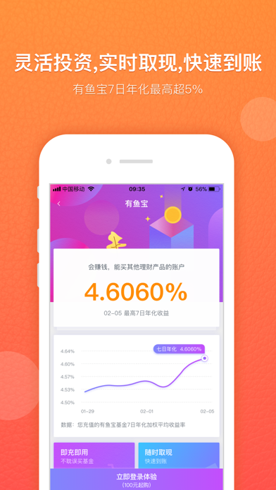 5.有鱼宝:可以买基金的钱包,历史7日年化收益高达5.00%,7×24小时随时取现,存取免手续费