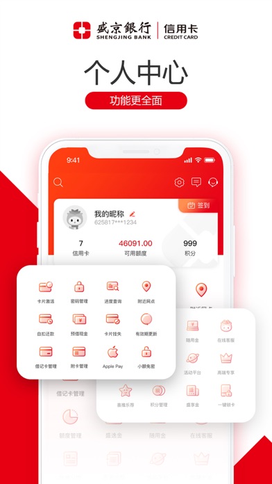 【我的】可用额度、卡片激活、进度查询、积分管理、登录方式等个人信息,让您一目了然,更聚合,更贴心。