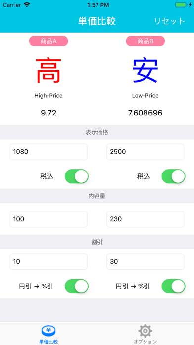 商品の単価を比較できるアプリです。