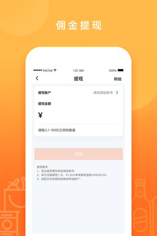 佣金提现:团长收获的佣金,可进行提现操作。