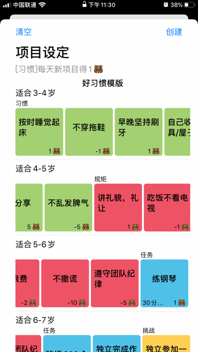 3.全年龄段标准卡片:提供适合各年龄段孩子的推荐习惯模版,供家庭参考