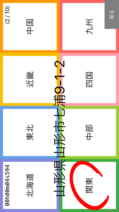 その住所がどの地方に入っているかを、画面をタップすることで答えます。