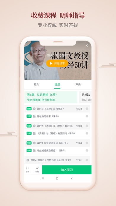 1、海量视频课程:满足用户学习需求,足不出户就能学易经。更有订阅课程期限内『无限回放』,课程『视频缓存』随时观看