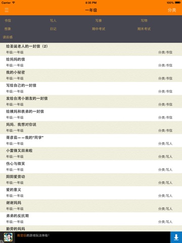 包含类型有:书信,儿歌,写人,写景,写物,叙事,想象,日记,期中考试,期末考试,看图作文,童话故事,读后感共计十三个题材类型