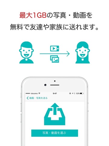 このアプリを使用すれば、1GBまでの写真や動画を劣化させることなく、送受信することができます。