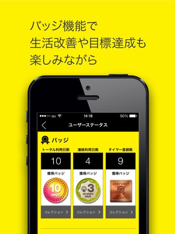 また登録したタイマーをFacebook、Twitter、LINEに投稿することができます。投稿したタイマーはWEB上にもタイマーが作られ、他の人のライフタイマーに取り込むこともできます。バッジ機能で、生活改善や目標達成も楽しみながらできます。