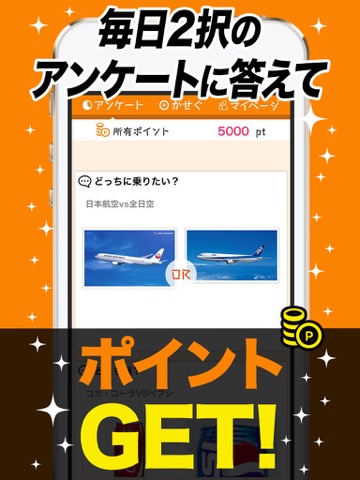 ・選択肢は2つ。質問内容に応じてタップするだけでポイントが貯まります。