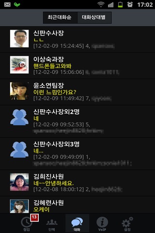 - 1대1 대화기능, 다자간 대화기능, 파일송수신, 쪽지발송