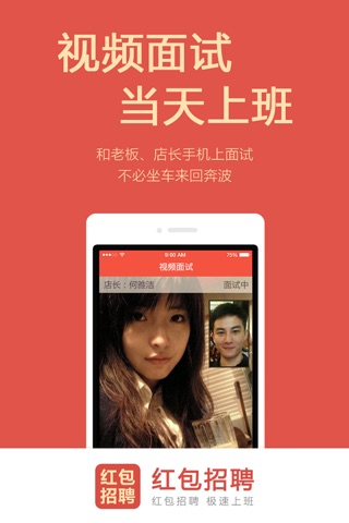 【红包招聘】特别的红包招聘平台,每个职位都有红包拿,视频面试,当天上班!基于地理位置,寻找附近最靠谱的好工作或人才,和企业老板直接手机面试,最快当天上班!急招人、急找工作的必备神器!