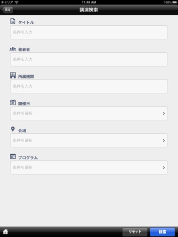 タイトル、発表者などで簡単に検索ができます。