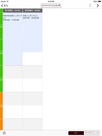 また、画面下部のボタンで表示切替すると、マイスケジュールに登録した講演を含むセッションのみに絞り込んで表示することができます。