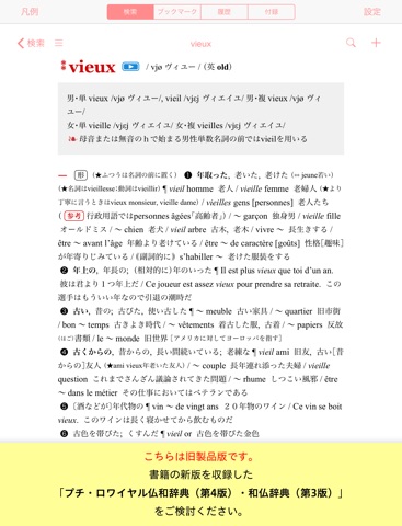「プチ・ロワイヤル仏和辞典」は、入門者から専門家まで使える定番のフランス語辞典、旺文社「プチ・ロワイヤル仏和辞典 第3版」のフランス語の電子辞典です。画期的な用例検索機能によって的確なフランス語の表現を見つけることができます。