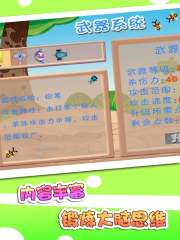 非常益智有趣的免费儿童益智塔防闯关游戏。专为3-6岁宝宝设计的益智策略早教游戏,让宝宝在游戏的同时学会26个英文字母以及发音,真正的做到寓教于乐。