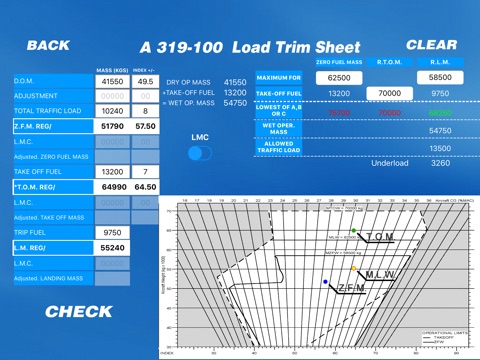 A-319 (100/112/132) is designed to cross-check the load sheet for pilots or dispatchers. This software is provided for information ONLY, and IS NOT intended to replace operational procedures. You are responsible for your calculation and resulting actions. You have to understand that the iPhone/iPad and this app itself have NOT been approved by any aeronautical authority or airline company to perform aviation safety tasks.