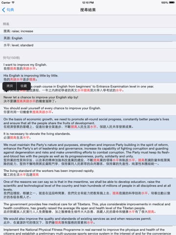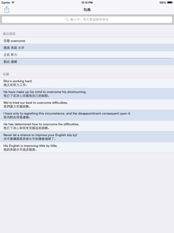 4.操作簡單方便,自動記錄最近搜尋的10條關鍵詞,可以拷貝例句,可以收藏例句。